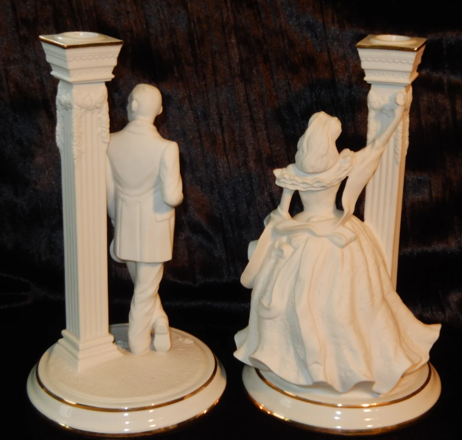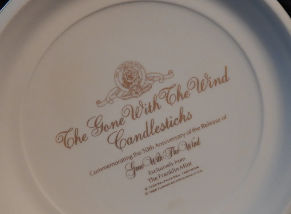 Celebrate the timeless classic Gone With The Wind with this elegant set of two 50th Anniversary candlestick holders. Each holder is beautifully crafted with intricate detailing, making them both a functional and decorative piece. Perfect for collectors, movie enthusiasts, or anyone who appreciates vintage memorabilia inspired by iconic films, these candlesticks add a touch of cinematic nostalgia and elegance to any display or tabletop arrangement.