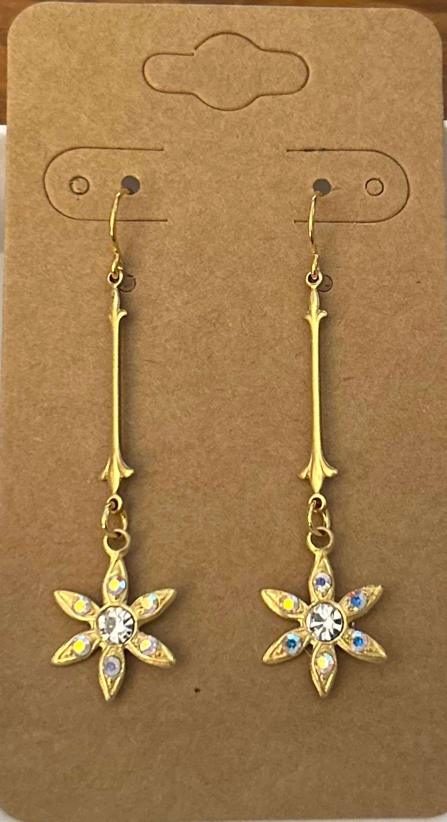A classic vintage look with Victorian Star drops. These floral/star drops are set with clear crystal and AB crystal stones.These earrings are both hypoallergenic and nickel free.