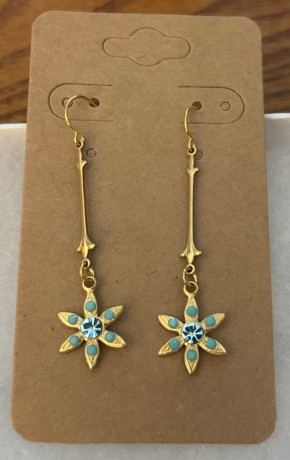 A vintage inspired pair of earrings with just the right amount of sparkle in blue. These earrings are both hypoallergenic and nickel free.